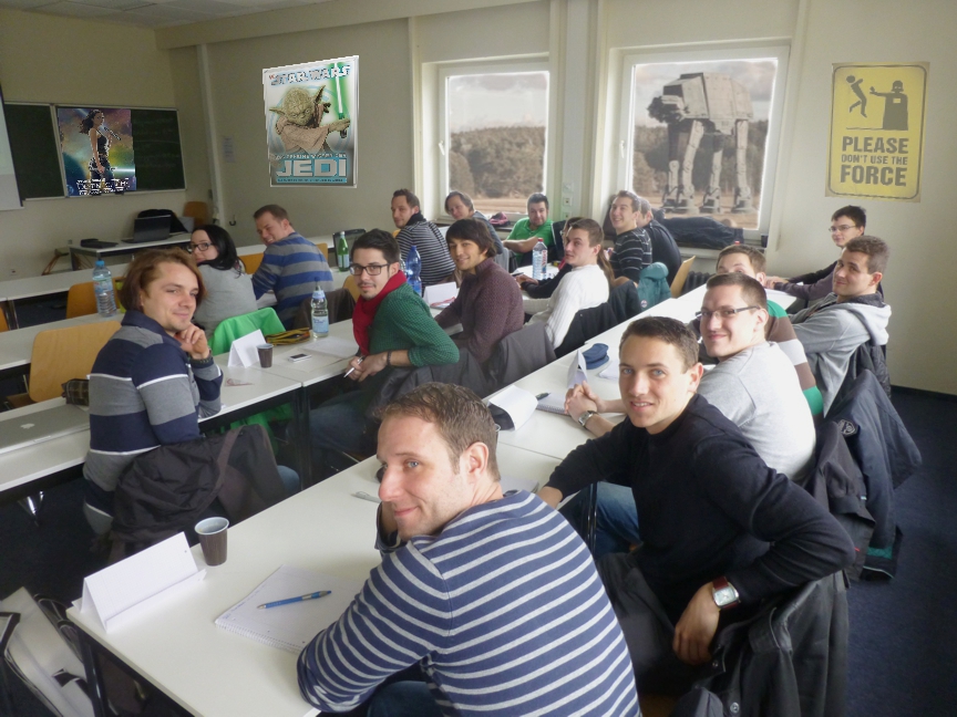 Die zahlreichen Studentinnen und Studenten des A-Kurses Präsentations- und Vortragstechniken passen gar nicht alle aufs Bild. Hier nur der "Mittelblock"