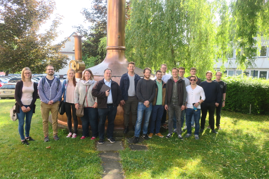 Exkursion mit dem Studiengangsleiter Prof Thurnes und dem Elite-Masterkurs "Spezielles Marketing" im Studiengang Logistik und Produktionstechnik zur Karlsberg Brauerei. (zum Vergößern das Bild anklicken)