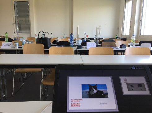 Masterkurs "Spezielles Marketing" in der Pause und im Bild unten die Elitestudenten dieses Kurses in voller Aktion